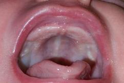Thrush or the white patches can be seen inside the cheeks on the roof of the mouth on the tongue on the gums commonly found in babies of two months and younger but could appear in older.